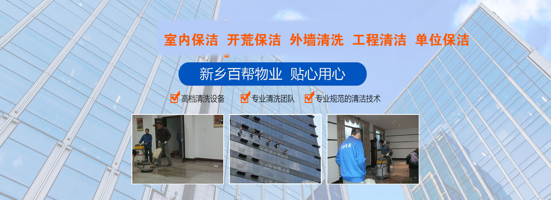 新鄉(xiāng)市百幫物業(yè)管理有限公司主要為各類賓館、酒店、樓宇、娛樂場所、機(jī)關(guān)團(tuán)體、寫字樓、公共設(shè)施、家庭提供各類型的保潔服務(wù)。承接家庭保潔,開荒保潔,專業(yè)擦玻璃,新房開荒,門頭清洗、鐘點(diǎn)保潔、企業(yè)保潔、辦公樓清洗、大型辦公場所清洗、商場清洗、工廠保潔,鐘點(diǎn)家務(wù)、老患護(hù)理、醫(yī)院病護(hù)等服務(wù)。 公司已誠信為本,為廣大客戶服務(wù)。為客戶,為社會(huì)有一個(gè)良好的清潔環(huán)境而努力,所有員工專業(yè)專心,工作勤懇認(rèn)真,作風(fēng)嚴(yán)謹(jǐn),是一支高素質(zhì)、高效率的專業(yè)團(tuán)隊(duì),致力打造一支本著客戶至上、服務(wù)至上的理念,為客戶、為社會(huì)提供一個(gè)專業(yè)、優(yōu)質(zhì)、高效的服務(wù)團(tuán)隊(duì)。 以市場為導(dǎo)向,以品牌為基礎(chǔ),管理為中心,奉獻(xiàn)為主題的發(fā)展策略,讓新鄉(xiāng)市百幫物業(yè)管理有限公司始終不忘記初心。細(xì)心的管理,貼心的服務(wù),全新的理念使新鄉(xiāng)市百幫物業(yè)管理有限公司在客戶心中形成了很好的服務(wù)形象,成為老百姓心目中信得過的家政服務(wù)企業(yè)...
